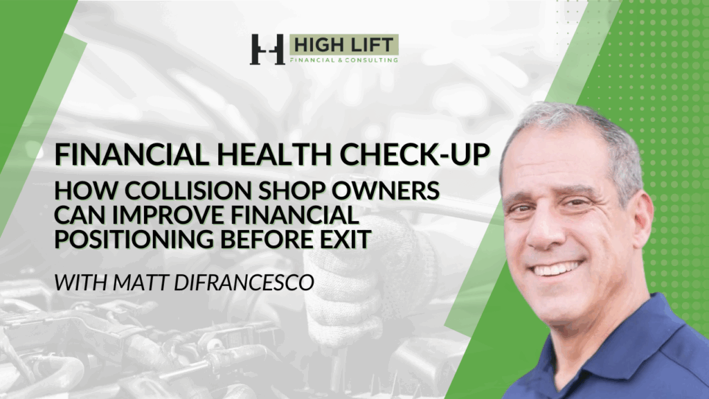 The truth is, most collision shop owners wait too long to get their numbers in shape. They mix personal and business expenses, lack clear cash flow reporting, and don’t realize how much that hurts their valuation—until a buyer walks away. That’s where High Lift Financial steps in.